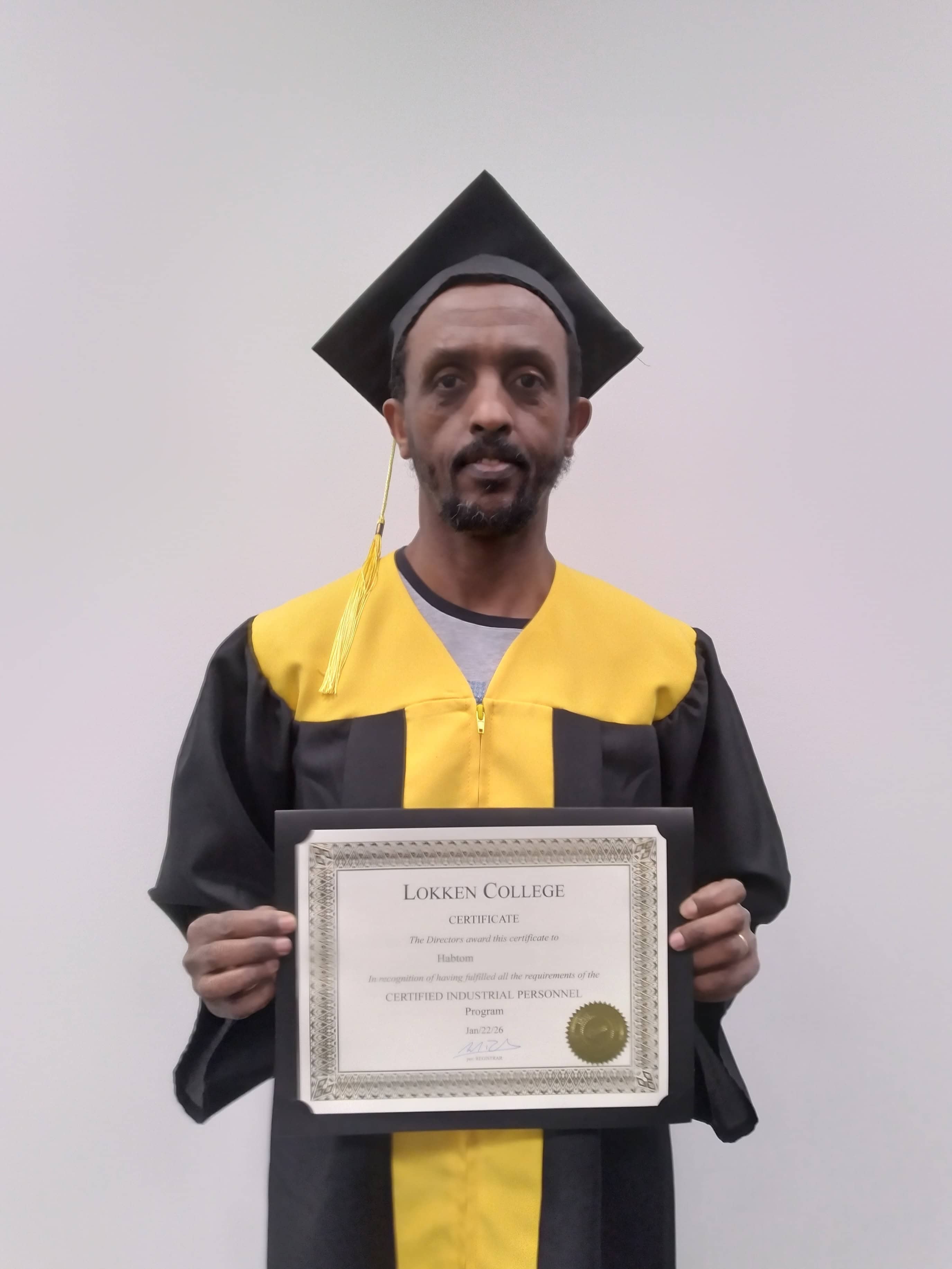 Habtom has successfully completed the Certified Industrial Personnel program and secured employment, meeting the program’s graduation requirement of obtaining employment.